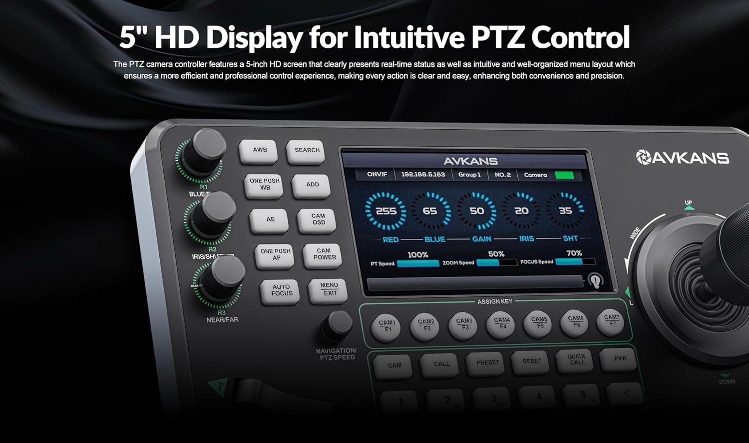 AVKANS PTZ Camera Joystick Controller with 5 Inch Display Preview - PowerJoy